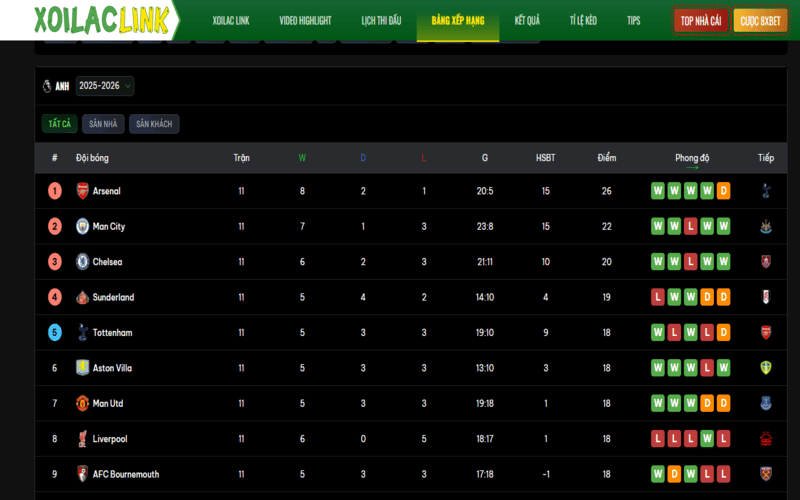 Bầu không khí bóng đá luôn trở nên sinh động hơn khi ánh mắt người hâm mộ hướng về bảng xếp hạng. Sau tiếng còi mãn cuộc, cảm giác chờ đợi xem vị trí các đội thay đổi ra sao luôn tạo nên sự hồi hộp khó tả. Những nền tảng hiện đại như Xoilac Link TV trở thành nơi cung cấp dữ liệu lập tức, giúp quá trình theo dõi hành trình của đội bóng yêu thích trở nên trọn vẹn hơn. Không chỉ là xem trực tiếp, nơi này còn mở ra kho thông tin thể hiện rõ phong độ và vị thế của các đội trong suốt mùa giải.