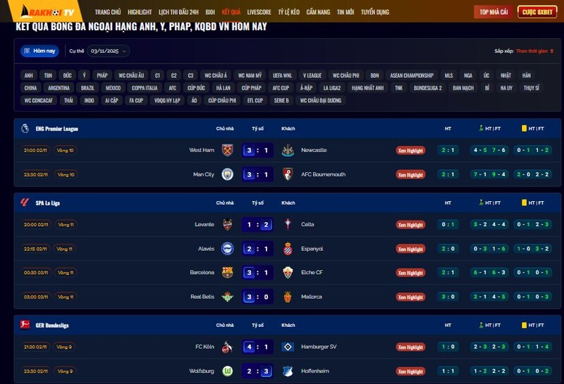 Rakhoi TV Link không đơn thuần là một trang web cập nhật tỷ số. Nó được thiết kế như một trung tâm thông tin bóng đá toàn diện, từ kqbd theo thời gian thực, thống kê kỹ thuật, highlight, cho tới link trực tiếp bóng đá chuẩn Full HD.