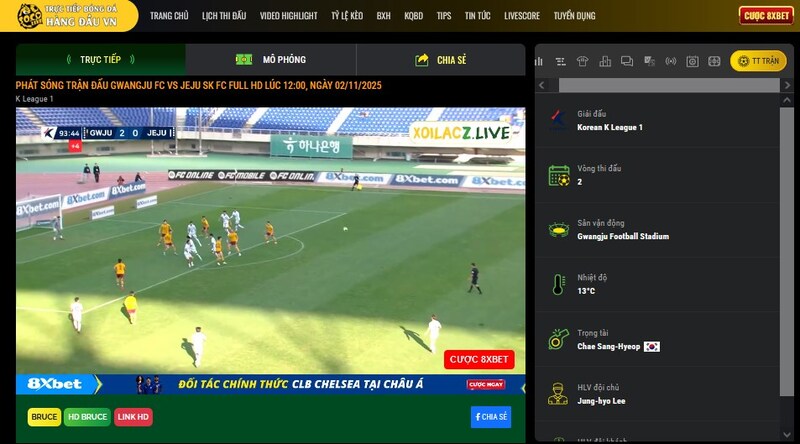 - Truy cập trực tiếp trận đang đá ngay lúc đó