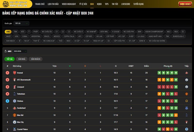 Bóng đá không chỉ còn là những cú sút, những đường chuyền hay những bàn thắng. Với người hâm mộ hiện đại, việc xem trực tiếp bóng đá và theo dõi bảng xếp hạng bóng đá đóng vai trò quan trọng không kém. Đó là hai yếu tố giúp fan cảm nhận trọn vẹn nhịp độ của một mùa giải, từ những trận đấu kịch tính đến cục diện đường đua vô địch đầy gay cấn.