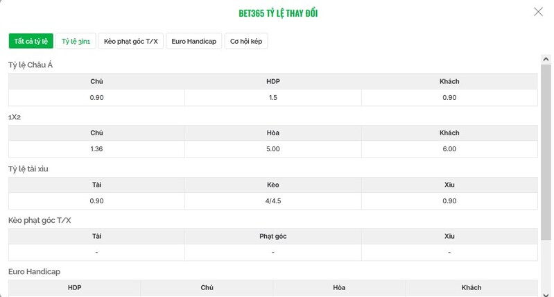- Kèo phạt góc, thẻ phạt: Các kèo phụ cũng có dữ liệu biến động, giúp đa dạng hóa chiến thuật.