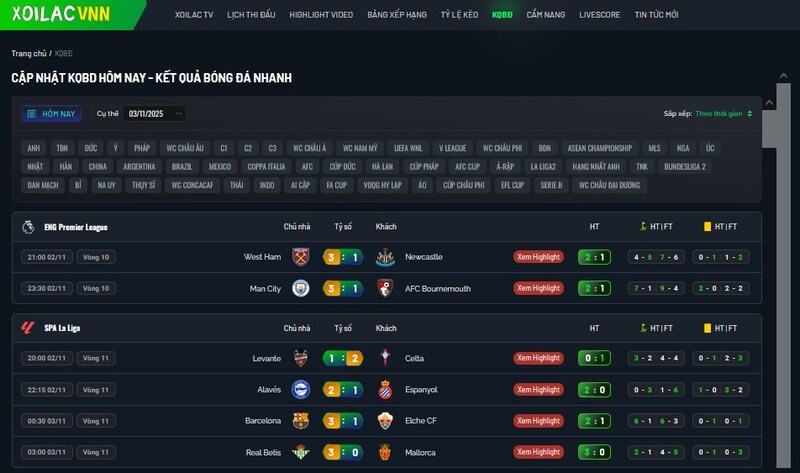 Không có gì bất ngờ khi chuyên mục được quan tâm nhất chính là trực tiếp bóng đá. Xoi Lac Link mang đến hàng trăm trận đấu mỗi tuần thuộc các giải đấu hàng đầu thế giới như: